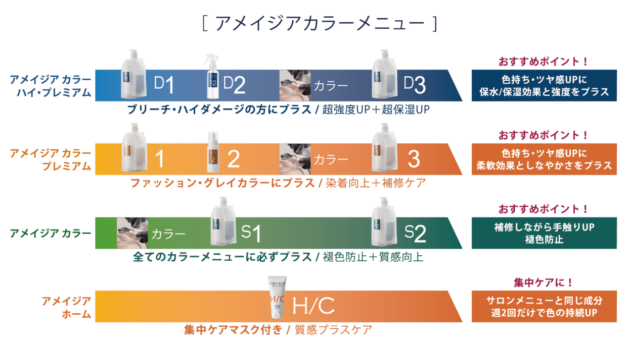 カラーメニューを”アメイジアカラー・メニュー”にすることで